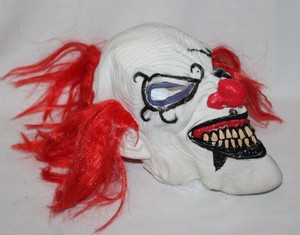 Scary Evil Fire Clown Halloween Mask Plastic Red Hair Painted Makeup